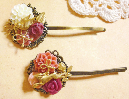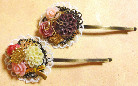 ヘアピンは作る度に、盛りがどんどん豪華になっていきます・・。
