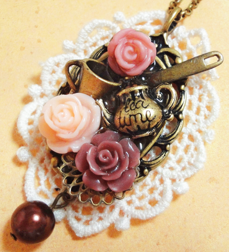 ティーパーティ風のデザインになります!このシリーズはいくつか作っていて、ブローチもありますよ^^