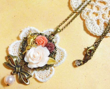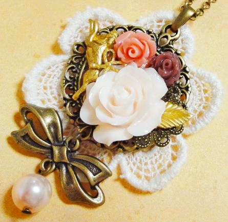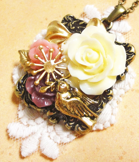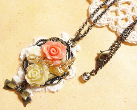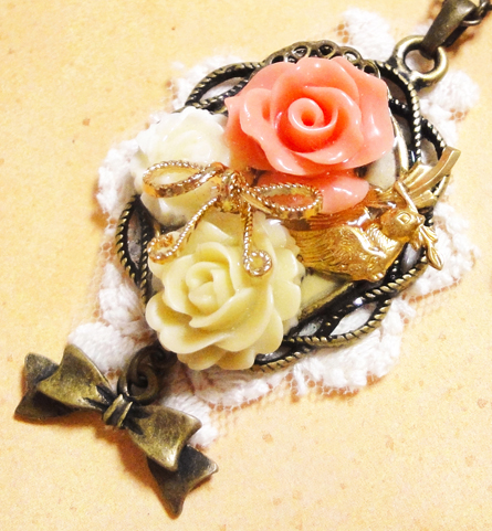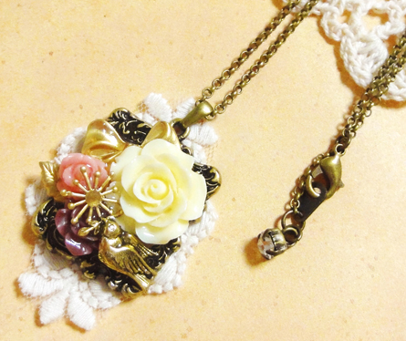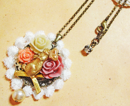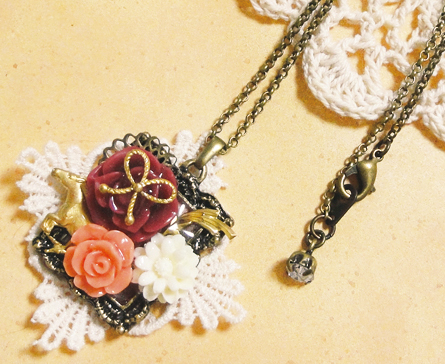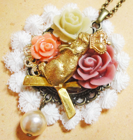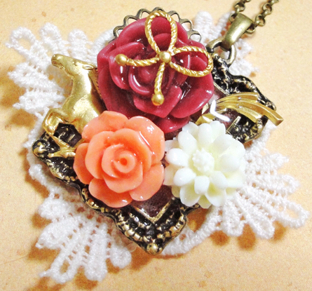 さて、ここ数日新作のバッグチャームやクリップブローチが続きましたが、今日はネックレス紹介です^^中くらいのサイズで、どちらも同じセッティングです。