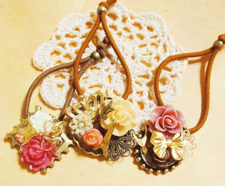 ネックレスの紹介が続いたので今日は久しぶりにヘアアクセです! ヘアゴム3点を紹介しますね。ヘアゴムはまとめて作らないので、掲載時期がバラバラになってしまいます^^;