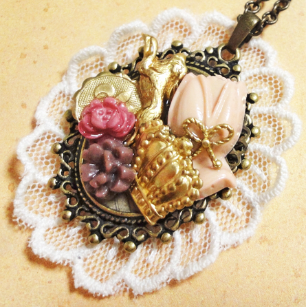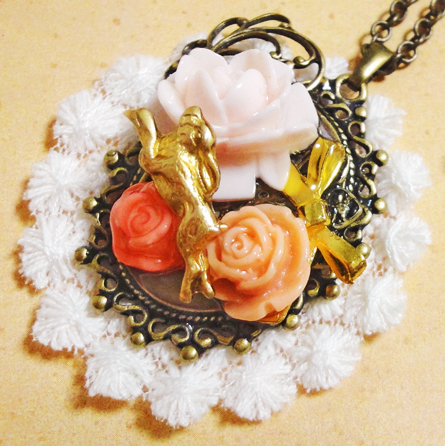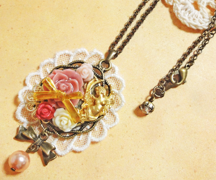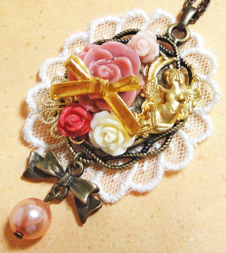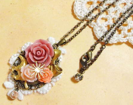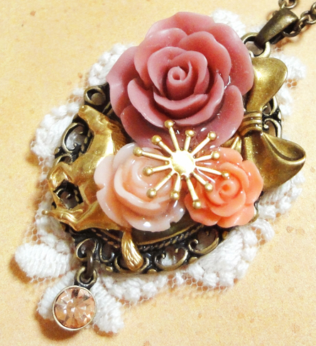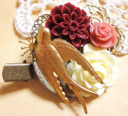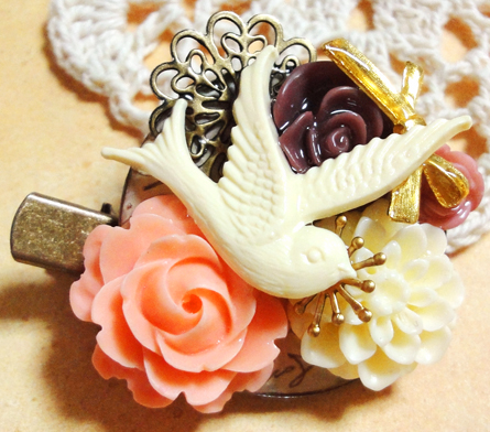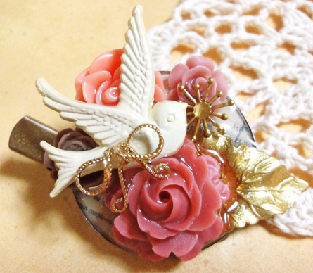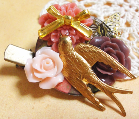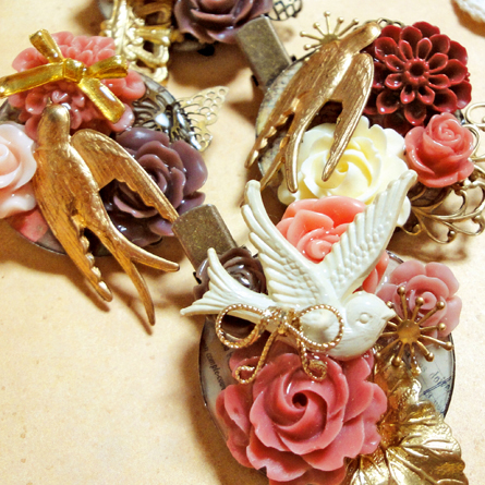 次はこちらです!こちらはイベントでお手に取られる方が多かった作品です^^ピンク系でまとめた花と、王冠と鳥カボションの組合せが良かったのかな・・?個人的にも好きな組合せです!