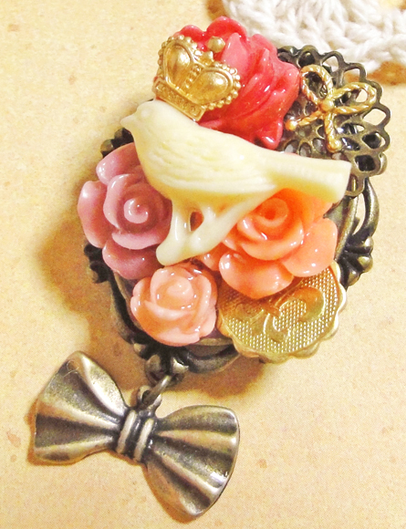 こちらは鳥のプチカボションに王冠を乗せてみました。