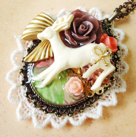 ここのところ鳥メインでしたが、今日はトナカイメインです。昨日ご紹介のものはお花が盛り盛りでしたが、今回は動物とリボンモチーフが目立つように配置してあります。また、色もピンク系とは少々変えてみました!