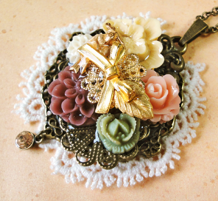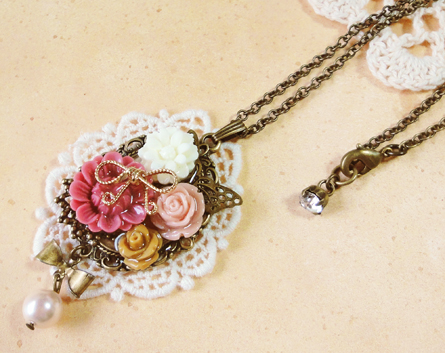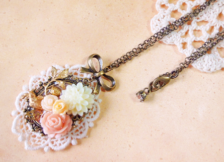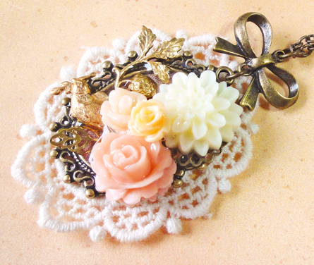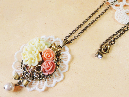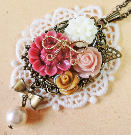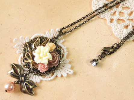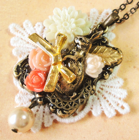 花盛りのリボン纏めネックレス+うさぎ*