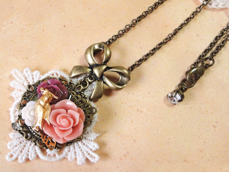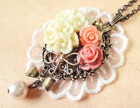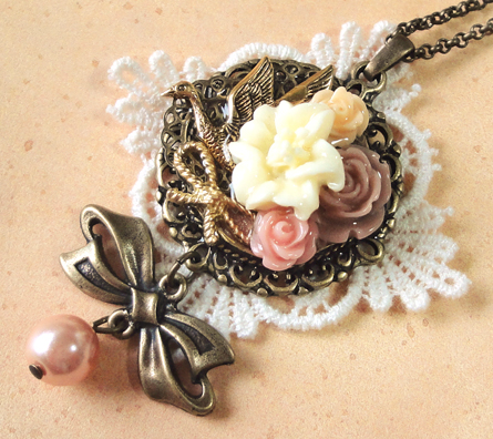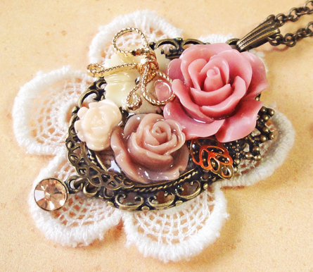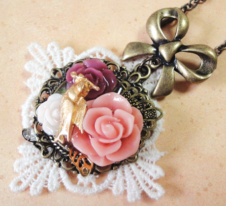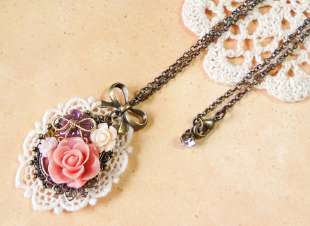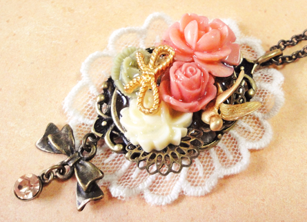 さて、今日も作品のご紹介です!リボンのパーツを使った作品二つです。 バックのレースも同じですね^^