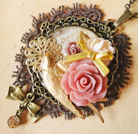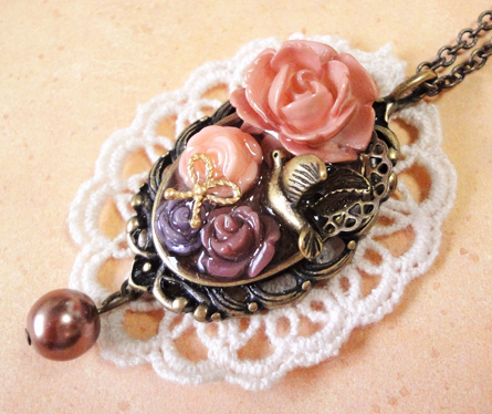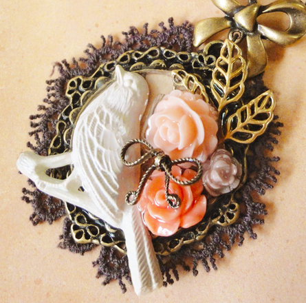 トップにユリのカボションを乗せました^^こっそり鳥が・・。