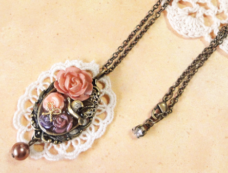 こちらは、アンティーク調の白い鳥がメインです。同じくピンク系、ゴールド系を加えました^^