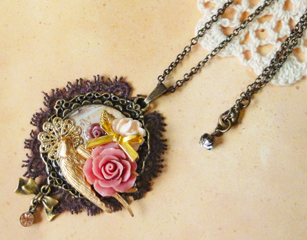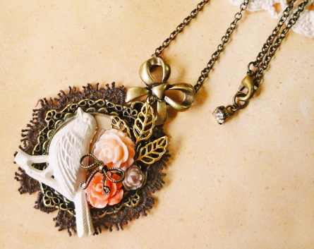 本日はこちらの2点を紹介しますね!こちらはゴールドの鳥パーツをメインにその他もピンク、ゴールドを使って華やかにしました。