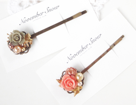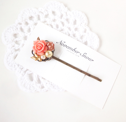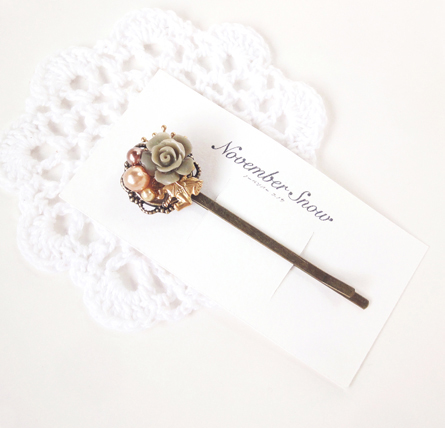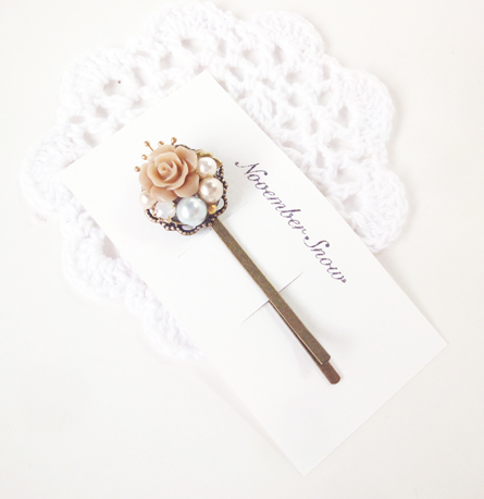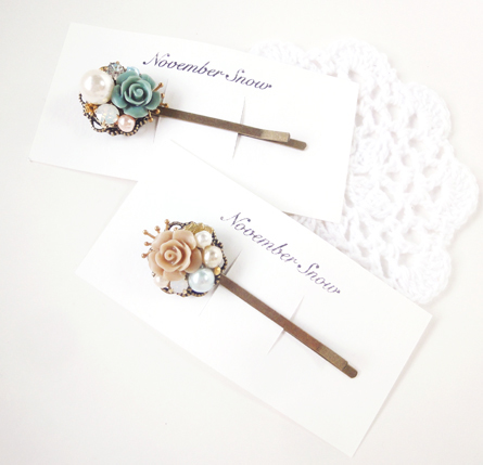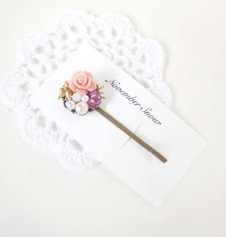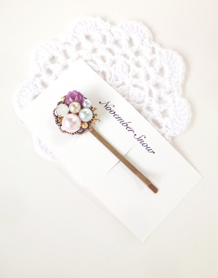 今日の作品は、しばらくピアスが続いたのでヘアピンです。