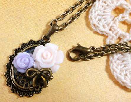 フラワーカボションやリボン、レースなどをモチーフにレジンアクセサリーを作成しています。