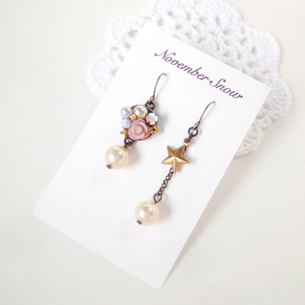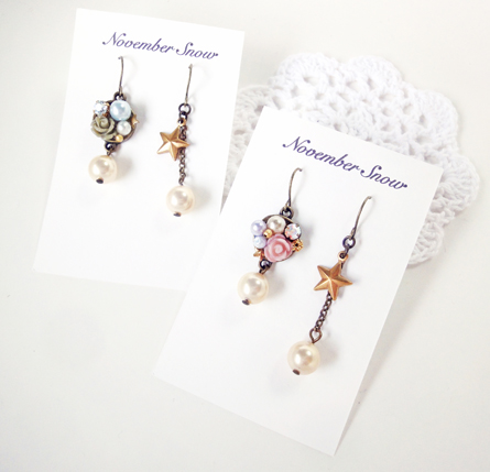 アシンメトリータイプのピアスは、この他にいくつか作りました^^また次の機会にご紹介しますね。
