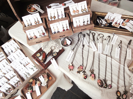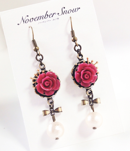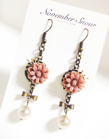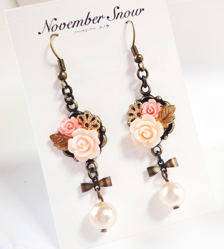 フラワーカボションやリボン、レースなどをモチーフにレジンアクセサリーを作成しています。