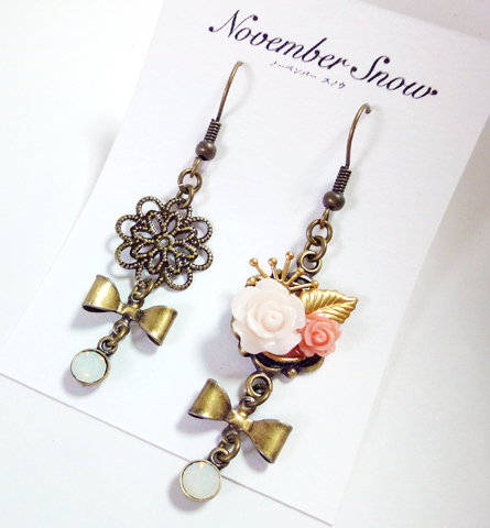 年末に友人と東京にパーツの買い出しに行ったのですが、そこで購入したコットンパールを使ってみました^^ ピアスはパーツの組合せが本当に楽しいです・・!
