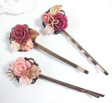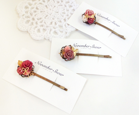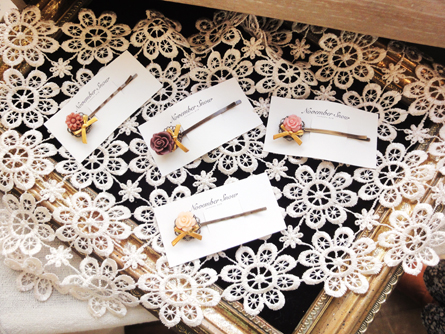 今日はミニサイズのヘアピンを紹介しますね〜^^委託先に納品した分を先月紹介しましたが、同時期に作ったものです。
