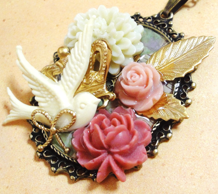 こちらは大きめのサイズのネックレスです。王冠と鳥の組合せです^^